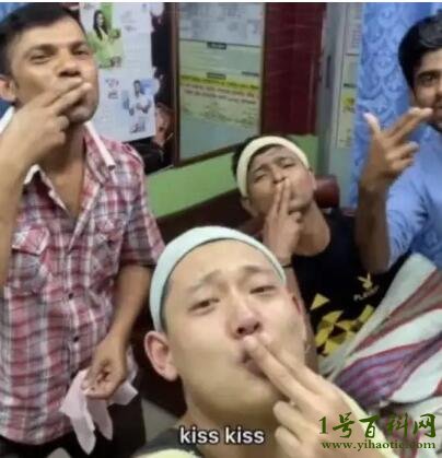 当时“大名一米九”在游历孟加拉国时,在孟加拉体验了一次孟加拉的理发造型,但在过程中可能理发师弄的太疼了,由于语言不通,所以他只能通过手势来沟通,就有了“KISSKISS”这个手势的出现,表示暂停、停止服务。而由于他的这种手势太过于搞笑和洗脑,便在网络上开始走红,网友们纷纷模仿他。现在大家应该都知道KISSKISS是什么梗了吧?